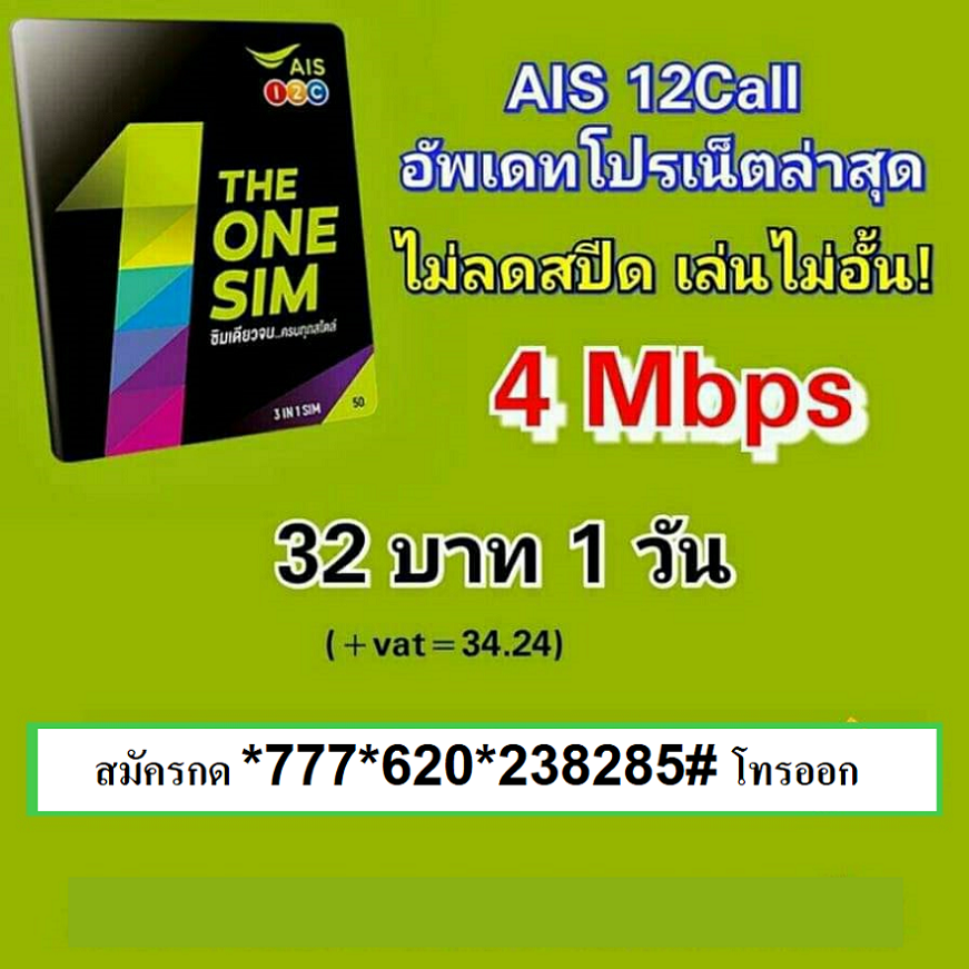 -เล่นเน็ต AIS 4G/3G ความเร็ว 4 Mbps ใช้งานได้ปริมาณ 1 GB +เน็ตไม่อั้น